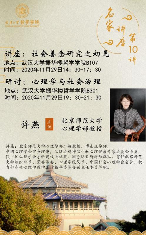 【11月29日】名家讲座第10讲:社会善念研究之初见