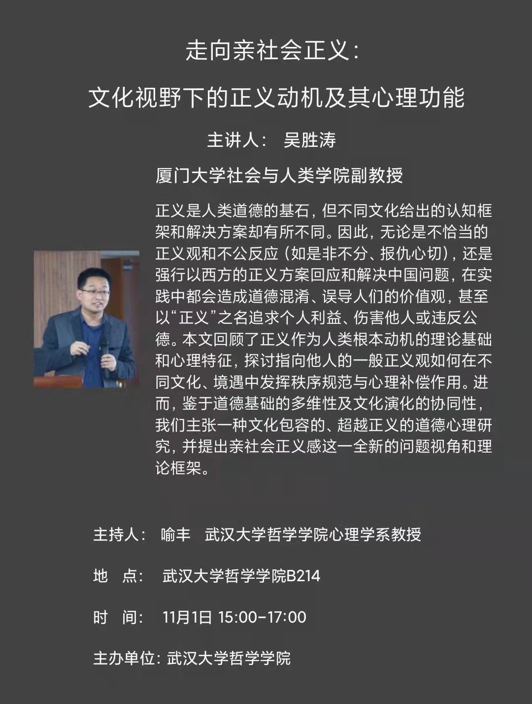 【11月1日】走向亲社会正义:文化视野下的正义动机及其心理功能