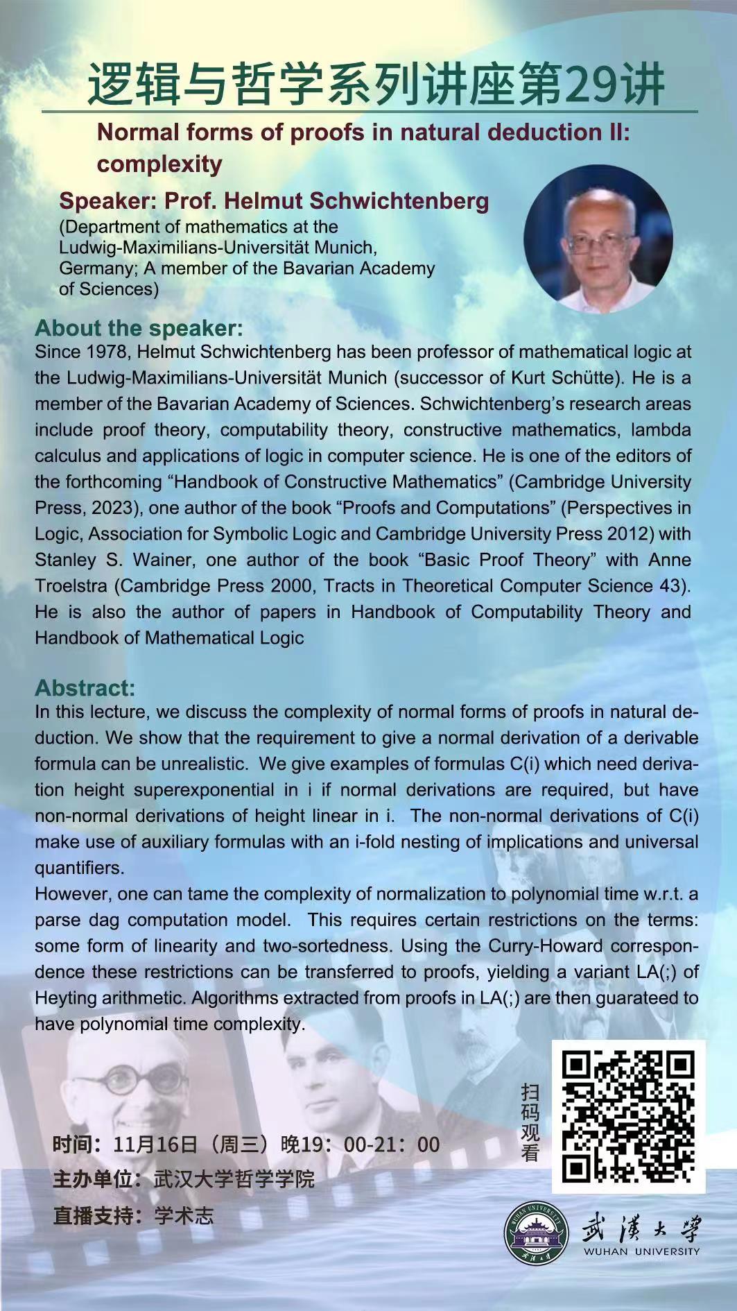 【11月16日】Normal forms of proofs in natural deduction Ⅱ: complexity——逻辑与哲学系列讲座第29讲