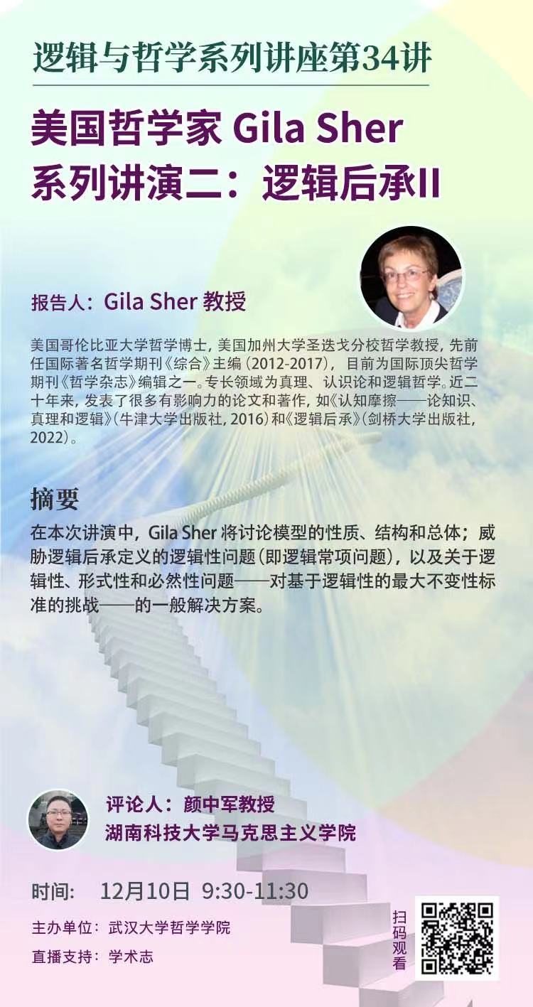 【12月10日】美国哲学家Gila Sher系列讲演二:逻辑后承 II ——逻辑与哲学系列讲座第34讲