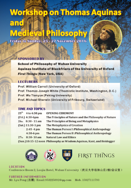 托马斯•阿奎那与中世纪哲学周末讲习班信息