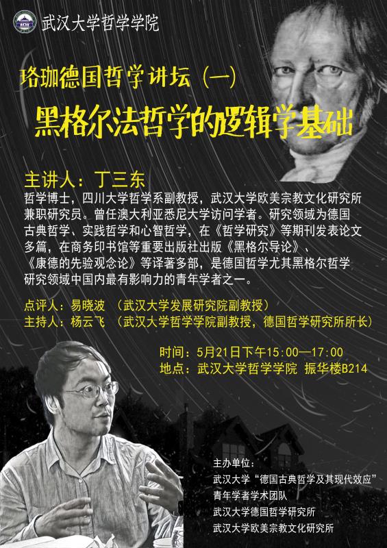 【5月21日】珞珈德国哲学讲坛(一):黑格尔法哲学的逻辑学基础