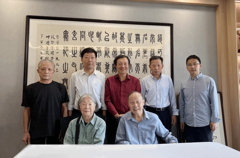 刘豁夫教授与其母亲和党委书记卢昌宁、郭齐勇教授、钟年教授、胡治洪教授、白宝玉副教授合影