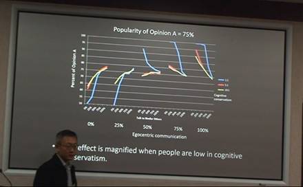 在介绍使用NetLogo软件对感兴趣的社会现象进行建模时,邱林教授就如何获取该软件以及学习的网址链接,用现有的研究数据展示了其用法与代码,并用暴动的实例进行了解释说明。邱林教授指出,在“Agent-based Modeling”中每一个agent都是决策独立自主的、存在人际依赖的、遵守简单规则的。整个程序的步骤为定规则、观察运行出的图式、产生新理论、实证验证,并用交流与社会影响的模型进行了演示。
