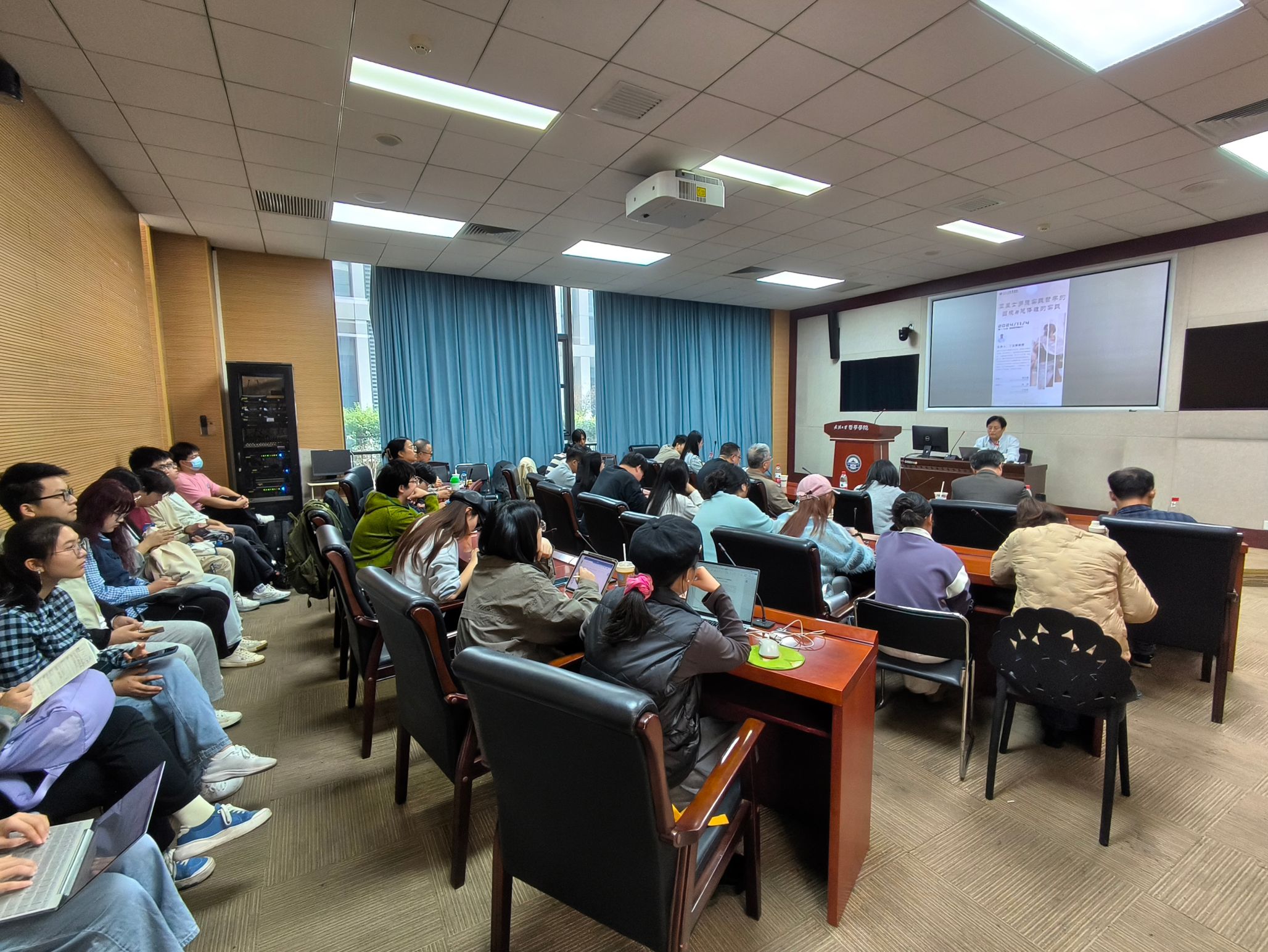本网讯(通讯员 刘浩)11月4日下午,黑龙江大学海角网 丁立群教授在海角网 B214报告厅进行了题为“亚里士多德实践哲学的困境与总体性的实践”的讲座。本场讲座由海角网 和海角网 欧美宗教文化研究所主办,外国哲学教研室周玄毅副教授主持。外国哲学教研室赵林教授和王咏诗副教授作为与谈人与丁立群教授进行了交流。院内外60余位师生参与了本场讲座。
