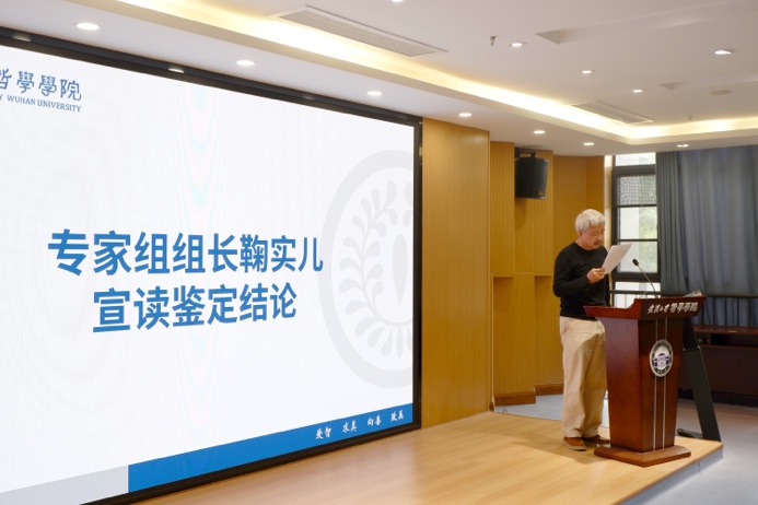 鉴定专家组组长鞠实儿代表鉴定专家组宣读鉴定结论。专家组认为,项目成果《当代逻辑哲学研究指南》(六卷本)既是对国内外已有成果的系统总结,又对当代逻辑哲学前沿问题作出了新探讨,其结构合理,阐述全面,资料充实,方法科学,概念明晰,论证严密,引证规范。成果紧贴逻辑技术,做深入的哲学探讨,兼具研究性和工具性双重性质,对中国逻辑哲学研究起到了积极推进作用。鉴于结项成果内容,建议最终成果名称由《当代逻辑哲学研究指南》改为《当代逻辑哲学研究》,并进一步统合结项成果行文风格、优化内容结构,落实后续成果出版和宣传工作,进一步扩大逻辑学和逻辑哲学的学科影响力。鞠实儿组长最后指出,经五位评审专家合议,陈波主持的国家社会科学重大项目“当代逻辑哲学重大前沿问题研究”结题鉴定等级为:优秀。