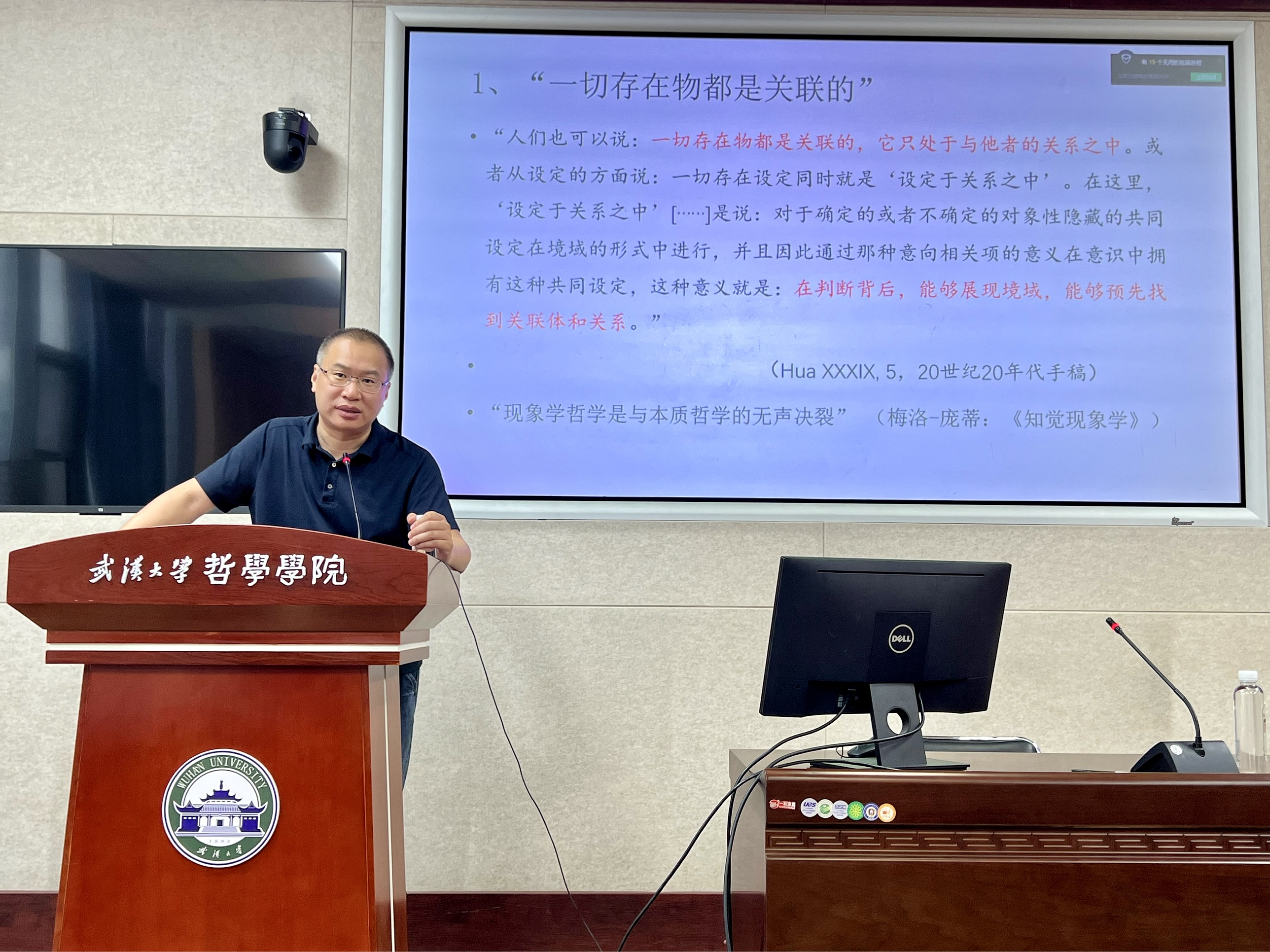 王俊教授首先从“什么是现象学”开始,引出了胡塞尔“一切存在物都是关联的”这一主张,认为没有一个绝对的、与其它存在者无关的存在者,有效或者存在意义就意味着关联性。王俊教授继而从胡塞尔现象学前史的角度,对狄尔泰以及威廉·夏普的相关思想对胡塞尔现象学中关联观念产生的直接影响。结合这两个方面的论述,王俊教授引出了本次讲座的核心主题“关系的建构(Konstitution)”,并着重分析了现象学中作为意义建构过程的“实事”(Sache)。