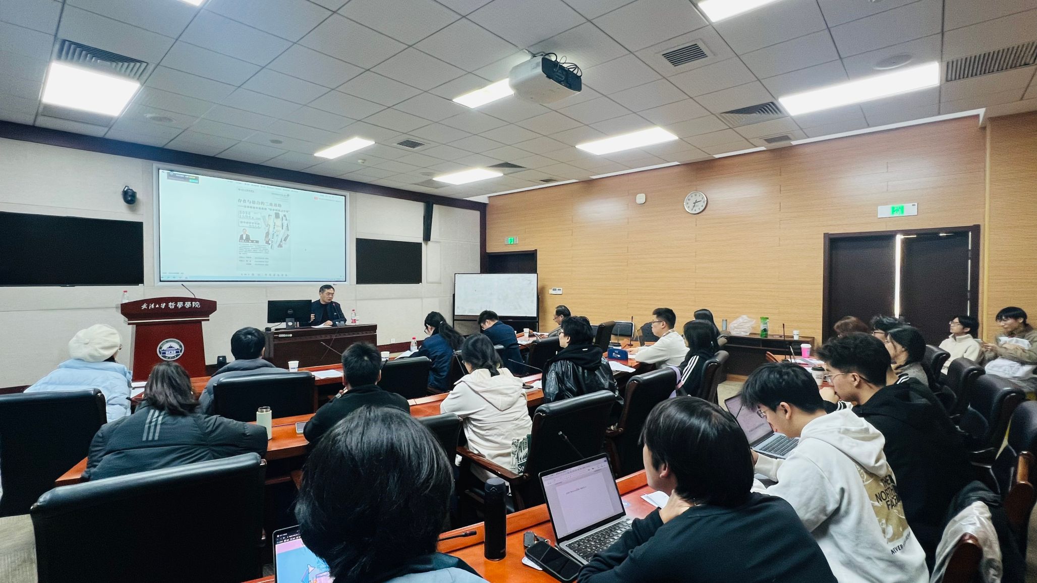 这场持续近三个小时的讲座不仅细致探析了海德格尔作为伟大思想家的“思之开端”,更引导听者直面如何“学习思想”的关键。王咏诗总结道,本次讲座不仅是对海德格尔哲思起源的卓绝探索,更生动地展示了一条严谨且充满激情的思想研究道路。最后,她对张柯教授的精彩讲座和在场师生的积极参与表示衷心感谢。讲座在热烈而持久的掌声中落下帷幕。