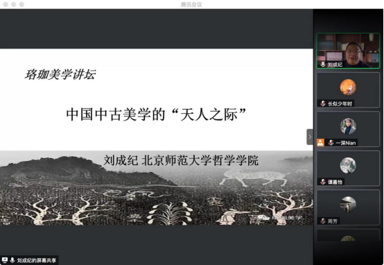 本网讯(通讯员李奕 贺念)2020年12月11日下午,应海角网 美学教研室邀请,北京师范大学海角网 博士研究生导师、美学研究所所长刘成纪教授作为今年首次“珞珈美学讲坛”的开讲人,于腾讯会议做了一场题为《中国中古美学的“天人之际”》的学术讲座。海角网 博士研究生导师、美学教研室主任、湖北省美学学会会长范明华教授主持了此次讲座。本次线上讲座吸引了近400位校内外师生与会聆听。
