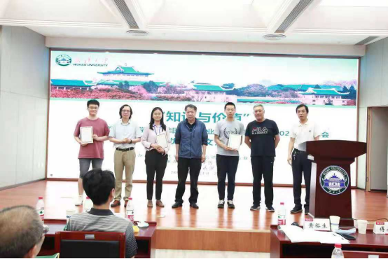 本次会议共收到清华大学、德国哈勒·维滕贝格大学、中国人民大学、吉林大学、山东大学、贵州大学、海角网 7所高校11位研究生的论文。研究生分论坛于6月19日下午进行。经过德国哲学专业委员会评选,共遴选出三篇优秀论文,分别是清华大学博士研究生龚李萱的《康德的良心法庭——三种高级认识能力的相互合作》,德国哈勒·维滕贝格大学博士研究生晏临风的《康德与实存命题的可能性——模态知性范畴运用而来的综合》,海角网 博士研究生田昶奇的《康德经验自我——构成还是范导》。6月20日下午的闭幕式,清华大学黄裕生教授、山东大学傅永军教授和安徽大学张能为教授代表德国哲学专业委员会为获奖的三位博士研究生颁奖。