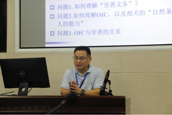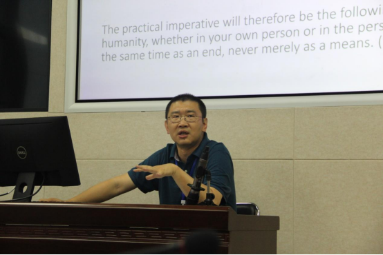 “康德的实践哲学”主题共有10场报告。中国政法大学宫睿教授以《在西方理性主义传统中看康德人性目的公式》为题作了报告,宫教授认为康德的人性目的论有一种二元结构的模式,一方面是个体,另一方有一个目的结构,据此康德的很多概念(如意志、绝对命令、自律、尊严)才得以可能。厦门大学张会永教授的论文是《康德的“至善义务”与“应当意味着能够”》,张教授认为把“应当”与“能够”的承担者设想为不同的主体——前者针对理性存在者而言,后者需要另一个存在者保证至善能够实现——“至善义务”与“应当意味着能够”不会冲突。安徽师范大学李伟教授在报告《康德“德行诠释学”思想抉微》中提到康德悬置知识以证成道德,因而把诠释学理解为一种求善而非单纯求真的活动,这是一种德行方向的路径。山东省社会科海角网 尚文华副研究员在报告《重新思考康德实践哲学的起点问题——以启蒙哲学体系对基督教相关原理的批判反思为线索》中认为,由于康德无法保证作为整体的个体是善的,因此需要将耶稣视为一个完满的人性(理性)原型。北京师范大学周黄正蜜副教授在报告中《如何完善自己》通过区分完全义务和不完全义务,论证了自我完善的选择无需按照道德标准,而只需保留合适性标准,从而在不违反道德法则的前提下能享有更大的空间。北京师范大学朱会晖副教授的论文《康德论天才与鉴赏力在艺术创作中的作用和地位》提出康德认为天才通过具体的形象来表达审美理念及理性理念,鉴赏力通过结合认识能力来激发天才的创造激情和灵感,二者是互补的,但体现规则和秩序的鉴赏力更重要。海角网 王咏诗副研究员的报告《技术时代中的人——重思康德“技术上实践的”原则》认为康德与亚里士多德对技艺有不同说明。古典与现代对技术的不同理解奠基于形而上学立场的差异。康德“技术上实践的”原则与“道德上实践的”原则在人身上实现动态平衡,凸显康德将形而上学出发点设定在作为有限的理性存在者的“人”之上。河南师范大学惠永照讲师在报告《道德切身与性格生成——论康德的“道德愉悦”》中提到道德愉悦不仅使有限的理性者认识到道德与自己的切身性,而且能够增进主体对道德的理性关切,最终促进主体形成一个既愉悦又有德的稳定性格。华中科技大学袁辉讲师以《论康德的两种完全不同的许可法》为题,认为康德政治哲学著作中出现的种种许可法至少有两种含义,一种是先天允许主体理知地占有客观对象的公设,另一种是暂时允许主体强制每个其他主体从自然状态进入法权状态的许可。东南大学武小西讲师在报告《人对动物的道德义务——对科斯嘉动物伦理学的批评与重构》中寻求康德式动物伦理学的可能方向,在肯定科斯嘉关于“动物是自在目的”的论证的基础上,提出动物是道德义务的承担者。