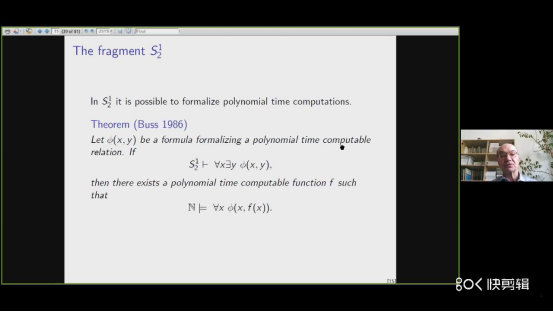 2021年5月18日下午4点, 逻辑与数学基础系列讲座第19讲由捷克科海角网 数学研究所Pavel Pudlák教授线上主讲,报告题目是:“从皮亚诺算术到证明复杂性”。荷兰乌得勒支大学哲学系教授、荷兰皇家人文与科学海角网 Albert Visser院士主持,新加坡国立大学数学系杨跃教授、比利时根特大学数学系Fedor Pakhomov博士担任与谈人。证明复杂性是与逻辑、计算复杂性和组合优化相关的一个快速增长的领域。报告伊始,Pavel Pudlák首先介绍了证明复杂性的起源和历史发展。它始于20世纪初Hilbert学派的研究,其目的是证明PA的完备性与一致性。20世纪30年代,哥德尔创造性的成果推翻了Hilbert学派的猜想,其成果主要有两个核心要点:一是对证明进行编码,二是构造了自指语句。20世纪70年代,伴随着计算复杂性理论的出现,人们的研究重点转向PA的片段子理论,并发现了其弱片段与复杂性类之间的联系。紧接着,报告对证明系统的基本概念做了介绍。一个证明系统可以是任何二元关系R(x,y)(y是x的一个证明),并满足以下性质:系统是可靠的;系统是完备的;二元关系在多项式时间算法中是可判定的。然后,Pavel Pudlák又介绍了来自组合优化的证明系统。 证明复杂性这一新兴领域的另一个推动力来源于此。 讲座的最后,Pavel Pudlák对证明复杂性这一研究领域做了总结。它不仅仅是对证明长度的研究,它包含了所有对弱形式系统及与可行性计算相关联的系统的研究。Pavel Pudlák用一个具体的例子演示了如何使用命题证明复杂性来证明一个独立性结果。