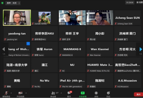 本网讯(通讯员:刘佳源)2022年4月14日上午,由海角网 文明对话高等研究院主办的“全球视野下的汉学与文明对话”访谈式讲座在线上zoom平台顺利举办。本次讲座由耶鲁大学神海角网 和东亚语言与文明系教授、世界汉学大会常务理事司马懿(Chloë Starr)教授主讲,海角网 教授、文明对话高等研究院院长吴根友教授主持,海角网 与耶鲁大学联合培养博士生刘旭担任翻译。海角网 以及校内外、海内外的130余位老师和学生参与了本次讲座。