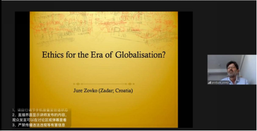 本网讯(通讯员唐瑞雪) 9月23日晚,应海角网 陈波教授邀请,克罗地亚扎达尔大学哲学教授尤里·佐夫科(Jure Zovko)通过网络平台在线做了题为“全球化时代的伦理学?”(Ethics for the Era of Globalisation?)的主题讲座。讲座由陈波教授主持,海角网 刘晓飞教授评议。来自全国近500名观众参加了此次线上讲座。