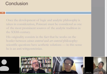 讲座最后,海因茨曼指出,庞卡莱哲学所具有的三个特征支持将其视为具有分析传统的哲学家。第一个特征是约定。与弗雷格的“涵义”一致,庞卡莱的“约定”的涵义既不依赖于经验,也与私人活动无关。第二个特征是强调论证简单性。庞卡莱在数学推理中引入了马赫的思想经济原则,一个好的可理解证明是语义稠密的(semantic density),这可以解释其生成性和句法的完整性,而没有任何多余的符号。第三个特征是非弗雷格式的逻辑(The Non-Fregean logic)。根据亨迪卡的说法,庞卡莱对弗雷格式符号的拒斥帮助他更准确地看到关于理查德悖论产生的原因。亨迪卡由弗雷格—罗素的一阶逻辑转向友好独立逻辑,这一举动足以证明庞卡莱的洞见。