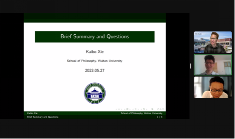 四川大学刘佶鑫分别就“重述原则的拒斥合理性”和“基本逻辑的语义与邻域语义之间的关系”进行提问。霍利迪分别进行回应,他指出,在非模态情形下重述原则固然适用,但是在模态语句中,重述原则会导致矛盾。尽管对重述原则的限制主要集中于模态逻辑中,但本次讲座中的命题变量可以代表任何命题,包括模态命题,因此在这种更丰富的语言中,对重述原则的限制十分有必要,弱化的重述原则可以被进行怎样的描述,是尚未解决的问题。基本逻辑的关系语义与邻域语义间的关系问题在论文中有所提及,基本逻辑语义框架不使用邻域函数的一个原因是关系语义框架相对来说更为简洁直白。