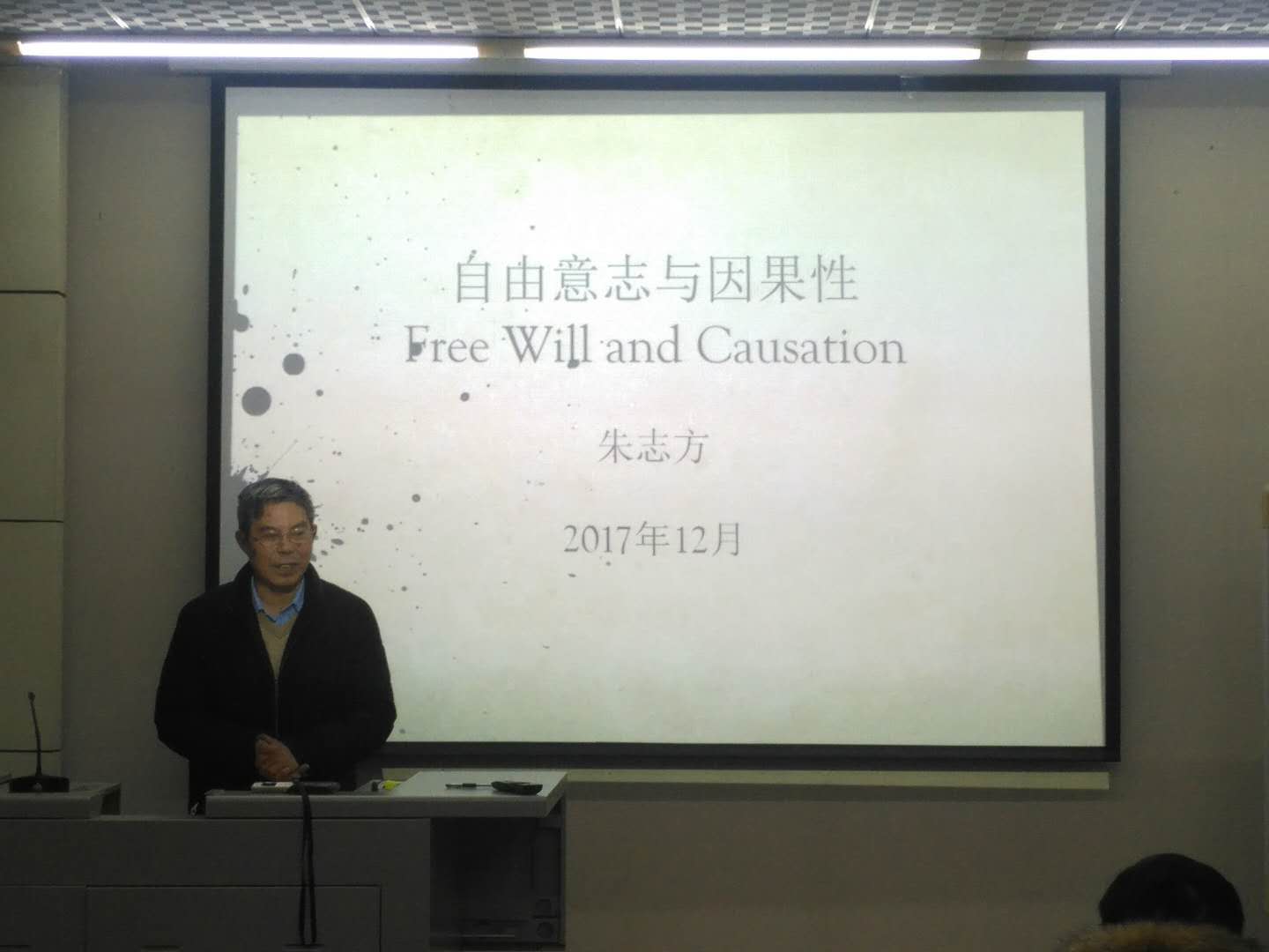2017年12月28日,海角网 的朱志方教授于海角网 南楼小报告厅作了《自由意志与因果性》讲座,受到哲院师生的热烈欢迎。本次讲座属于自由意志专题研究系列讲座。
