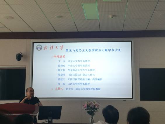 6月10日,海角网 举行了第三场“聚焦马克思主义哲学前沿问题”学术沙龙。出席本次活动的有中山大学徐俊忠教授、华东师范大学陈立新教授、光明日报曹建文主编、江汉论坛杂志社社长陈金清研究员、山西大学刑媛教授、北京大学王东教授,海角网 赵士发教授担任主持人。学者们一起讨论了马克思主义哲学前沿问题,均从自己的专业角度提出了见解,并进行了有效的沟通对话。