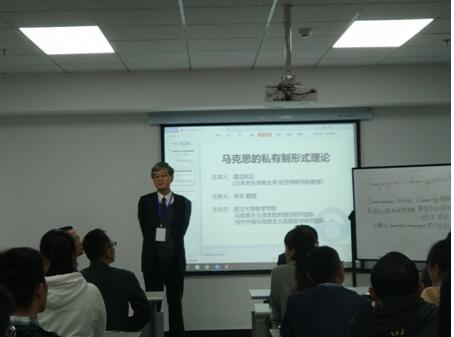 本网讯(通讯员:张芮 丁雨薇)2018年10月21日晚上7点,日本关东海角网 大学渡边宪正教授受邀在振华楼B102做了题为“马克思的私有制形式理论”的讲座。讲座由海角网 李志教授主持,来自中央财大的刘礼博士、湖北大学的萧诗美教授和海角网 经管院的王今朝教授等50余名师生参加了本次讲座。