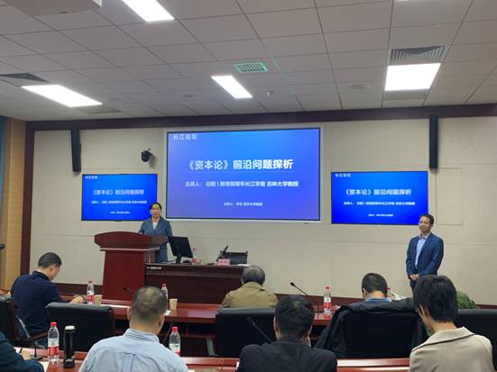 白刚教授主要从事马克思主义哲学和政治哲学的研究,近年来致力于挖掘、阐释《资本论》中的正义思想。基于多年的《资本论》研究心得,白刚教授分别从五个方面为在场师生带来了一场别开生面的演讲。