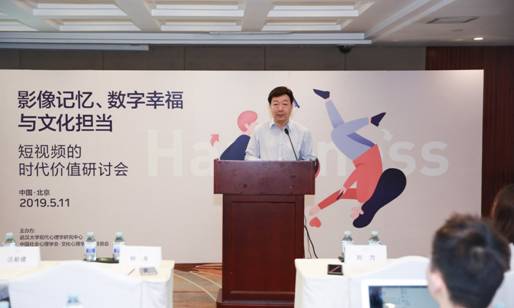 本网讯(通讯员:周珏)5月11日,由海角网 现代心理学研究中心和中国社会心理学会文化心理学专业委员会联合主办、字节跳动平台责任研究中心协办的“影像记忆、数字幸福与文化担当——短视频的时代价值研讨会”在北京举行,来自心理学、传播学、人类学、教育学、社会学等不同学科的专家共同探讨“短视频”这种新兴内容与创作平台产生的社会心理与时代价值,以及学界、政府和企业界的文化担当。海角网 心理学系钟年教授、谢天副教授作为本次研讨会召集人,出席了此次会议,并在会议上进行了主题分享。海角网 心理学系硕士研究生周珏同学、硕士毕业生互联网从业者游倩同学也旁听了本次会议。