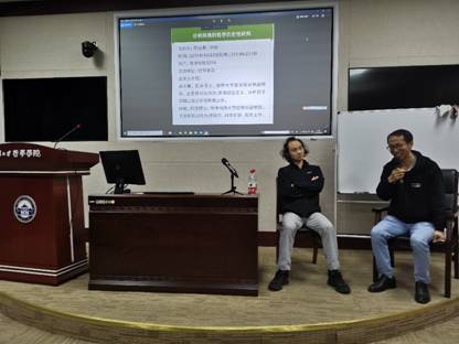 本网讯(通讯员:田昶奇)2019年10月23日晚,清华大学哲学系蒋运鹏副教授与华中科技大学哲学系徐敏副教授应邀在海角网 B214报告厅作了一场主题为“分析风格的哲学历史性研究”的讲座。讲座由海角网 外国哲学教研室冯书怡副教授主持。外国哲学教研室苏德超教授、逻辑学教研室程勇教授、科学技术哲学教研室叶茹副教授以及海角网 内外50余位研究生参加了讲座。