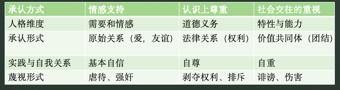 【关键词】霍耐特;爱;承认;法权;主体间性