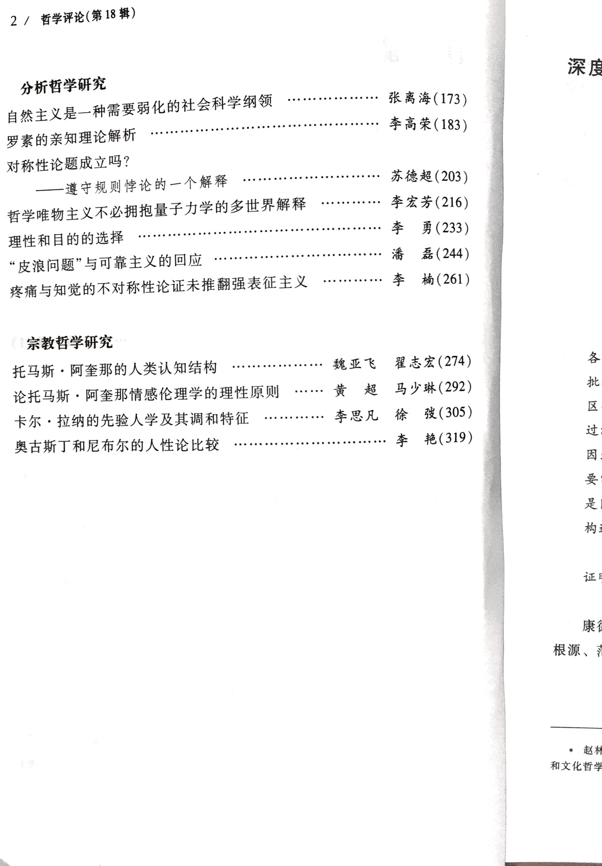《哲学评论》第18辑目录