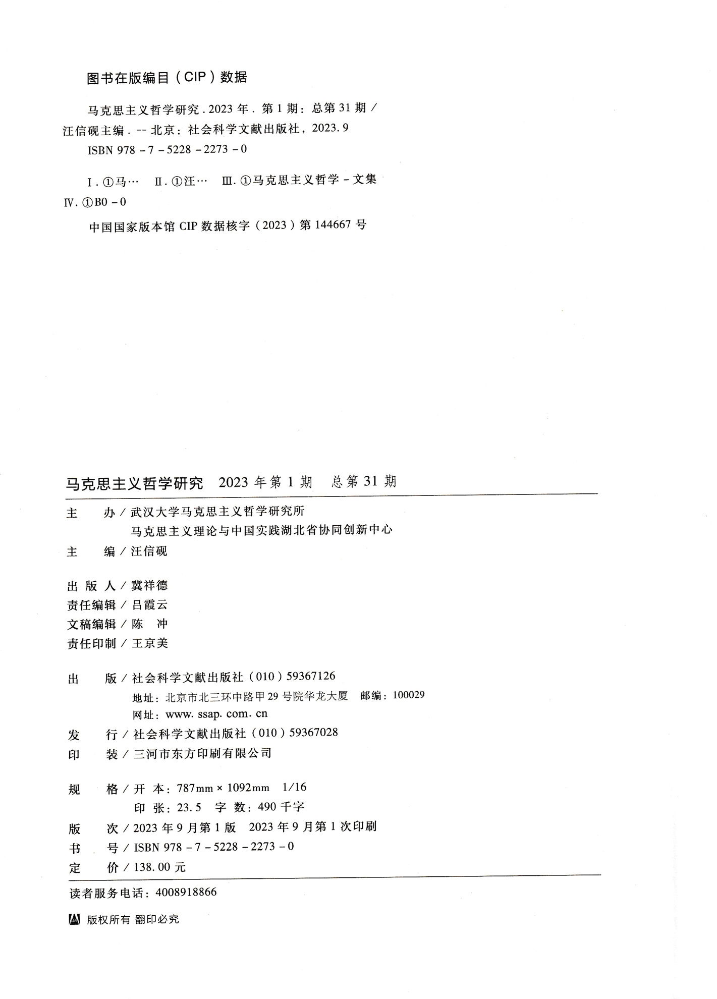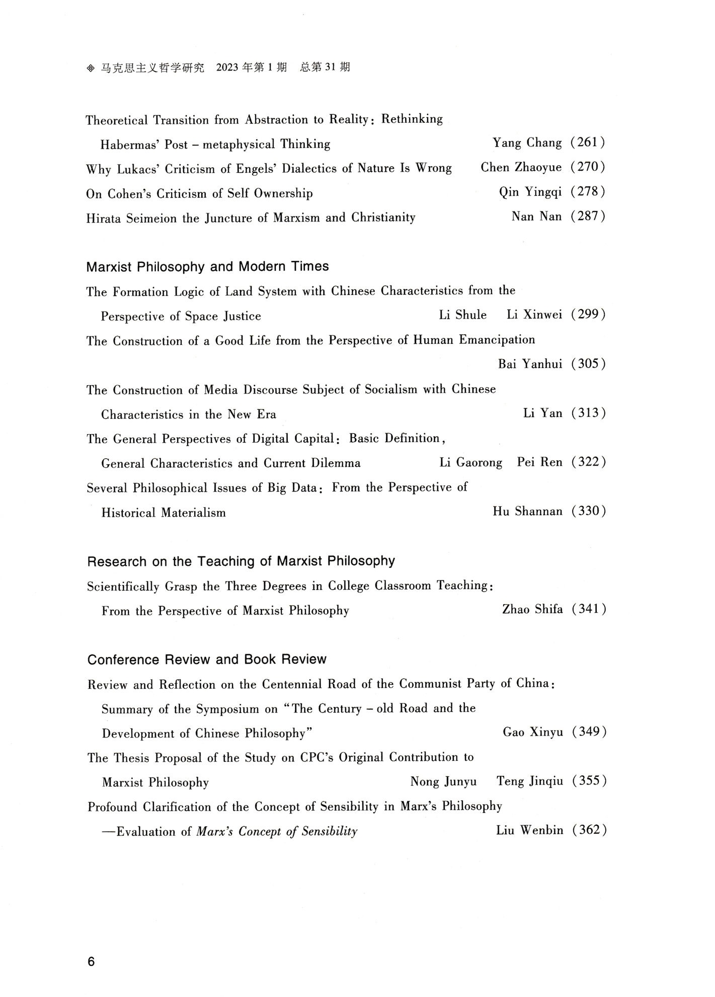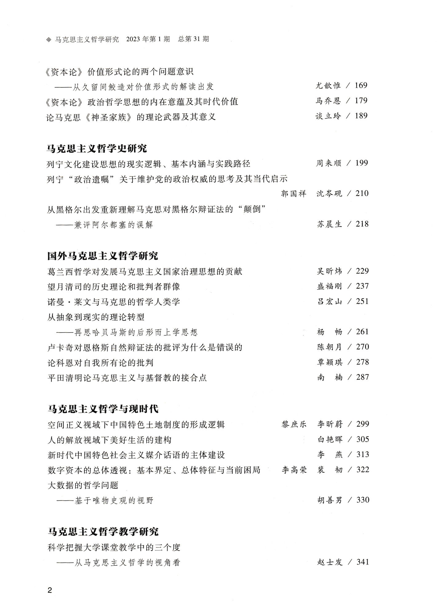 《马克思主义哲学研究》(2023年第1期)