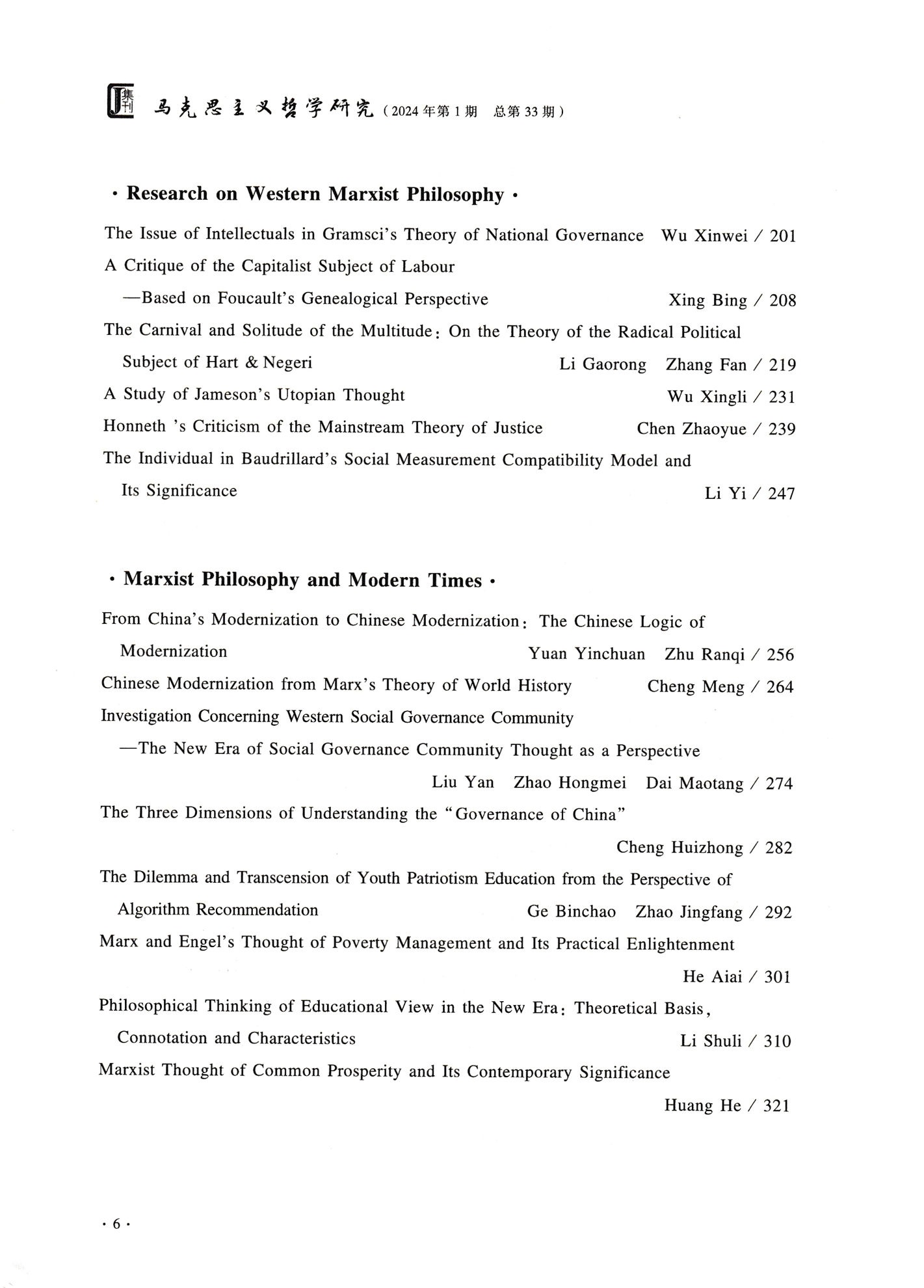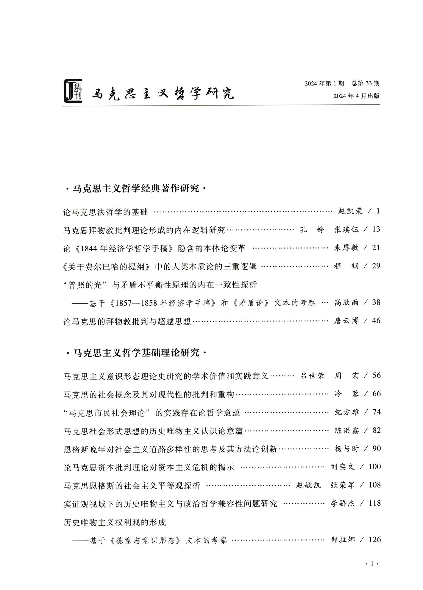 《马克思主义哲学研究》(2024年第1期)