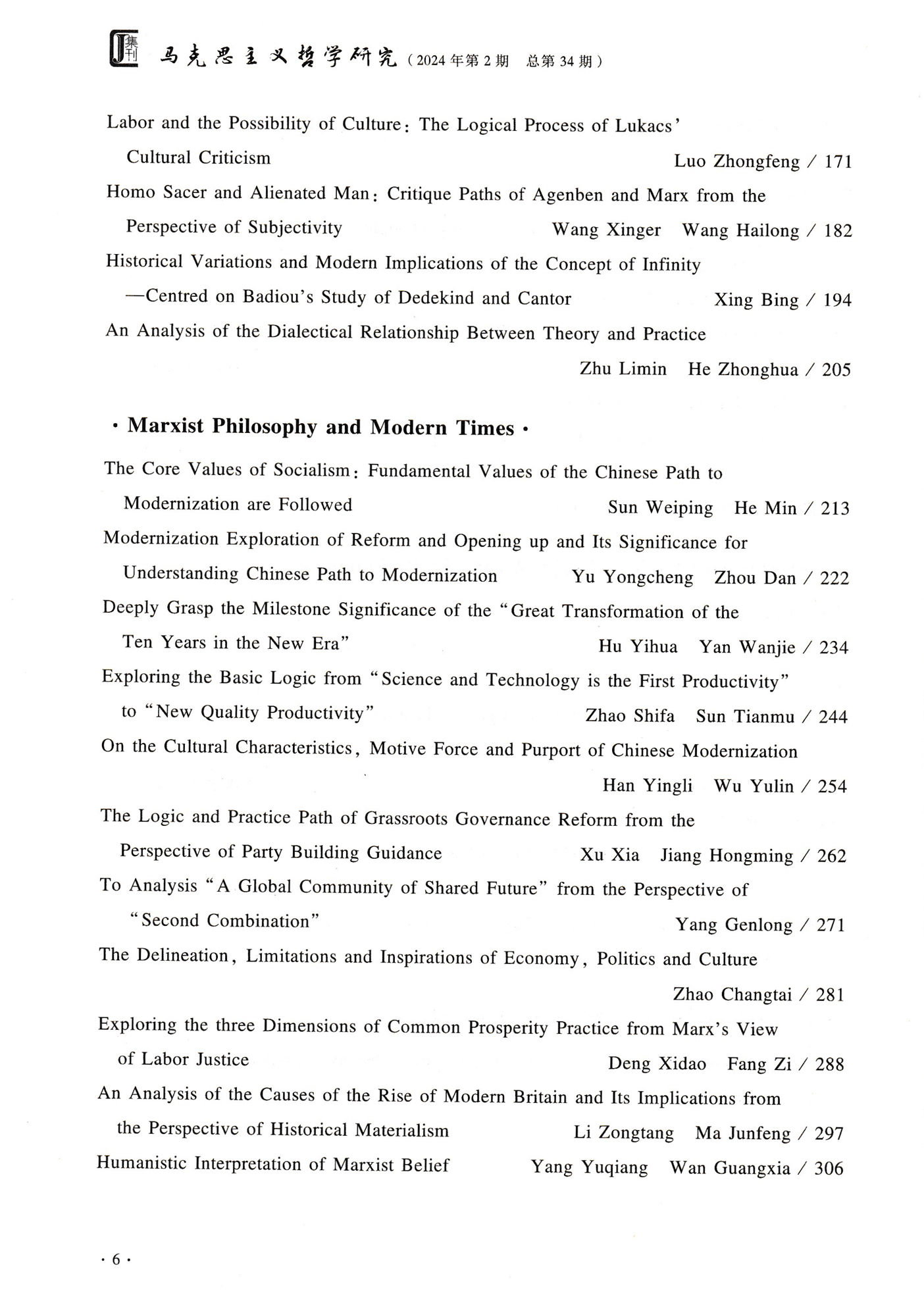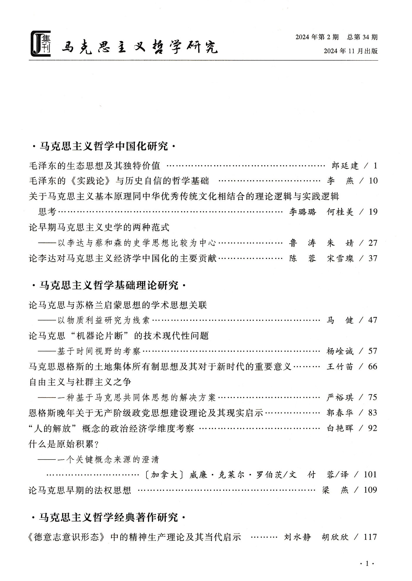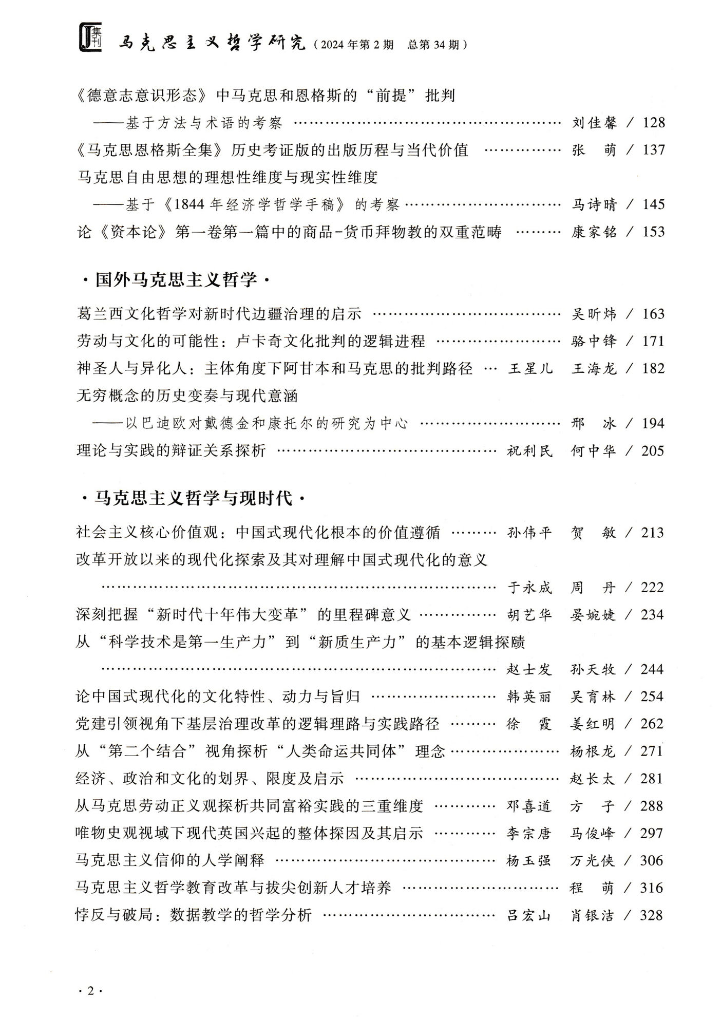 《马克思主义哲学研究》(2024年第2期)
