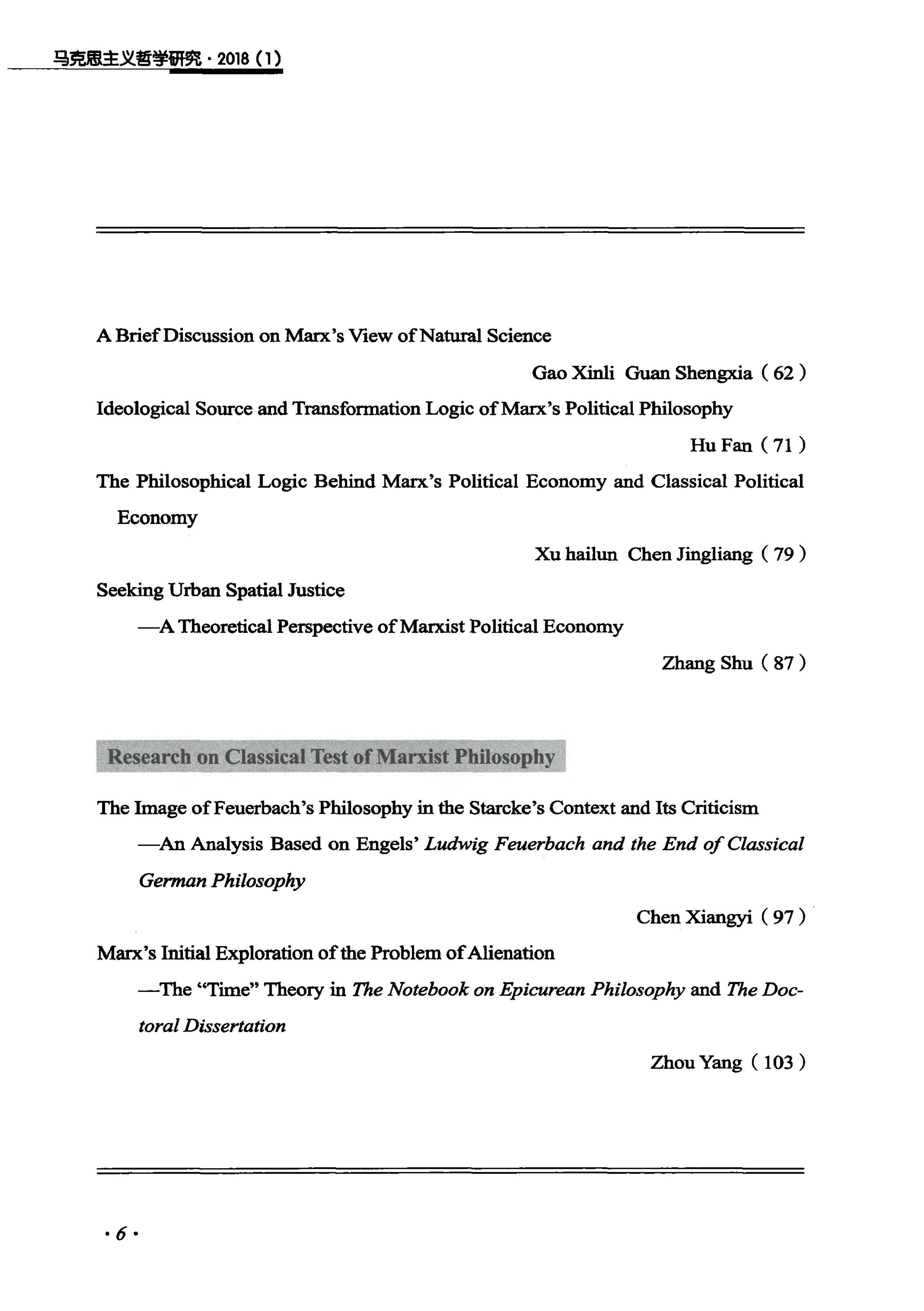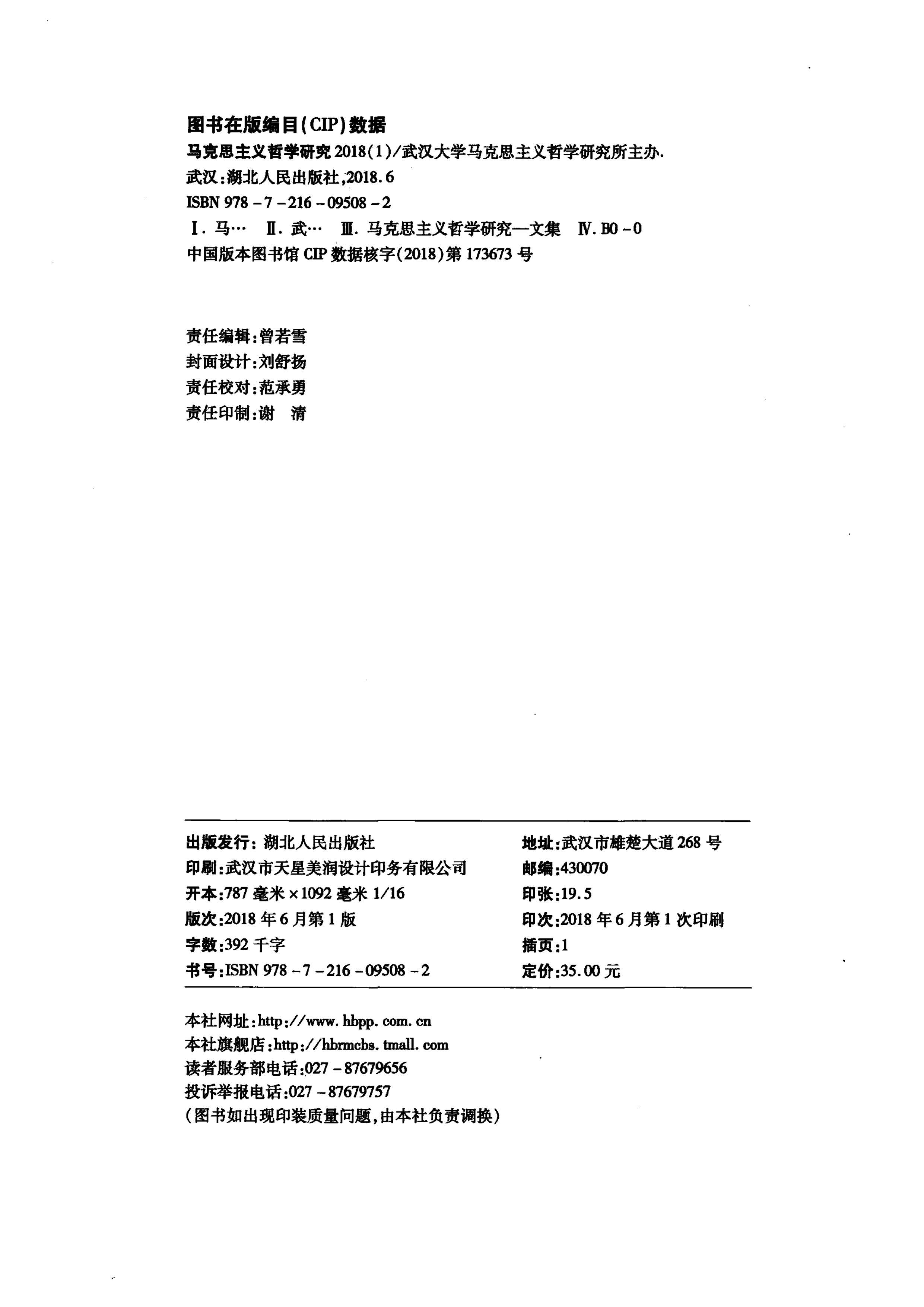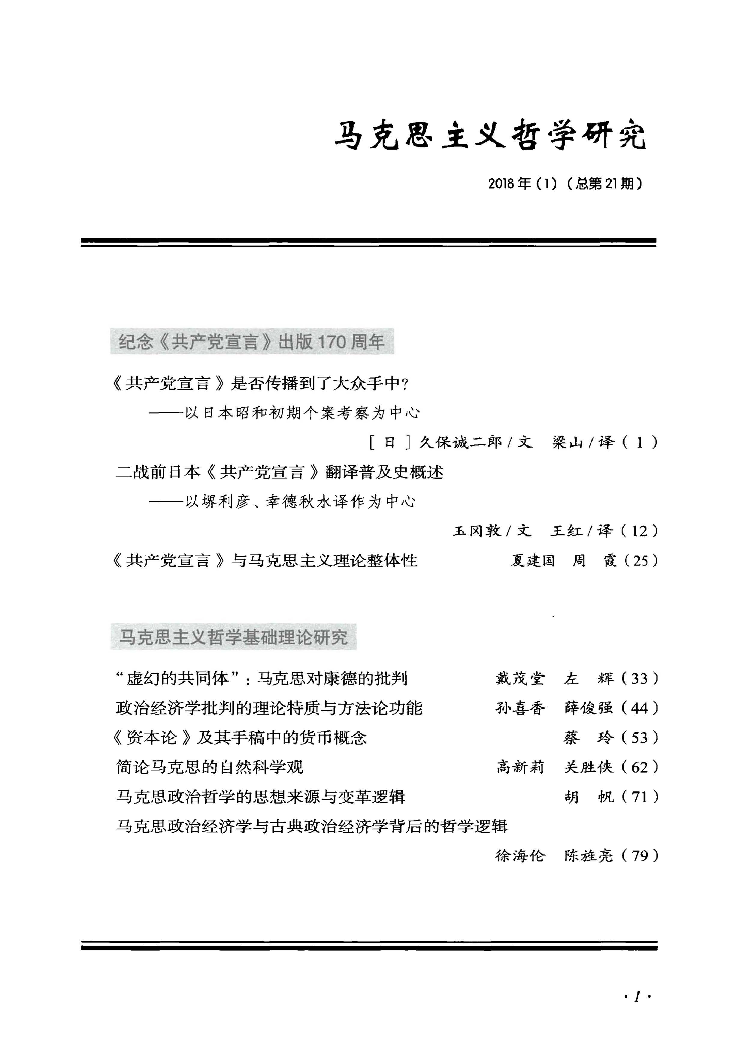 《马克思主义哲学研究》(2018年第1期)