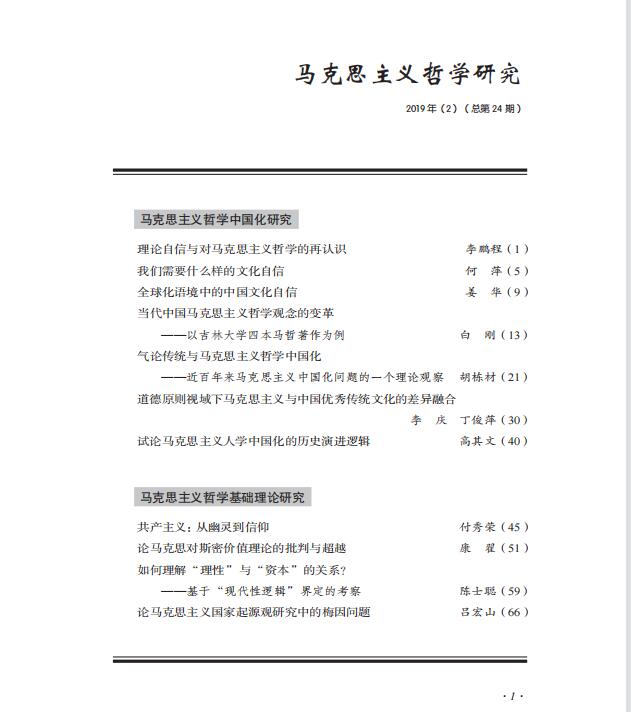 《马克思主义哲学研究》(2019年第2期)