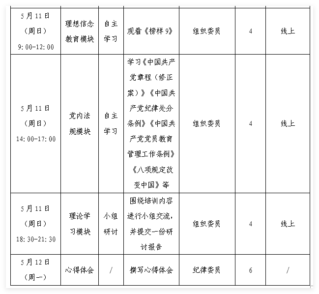 2.加强培训管理。海角网 党委设立组织委员1名负责协助做好培训班的活动组织,确保活动的有序开展,纪律委员1名负责协助记录,负责协助记录培训班的考勤、心得体会等工作,确保培训效果。