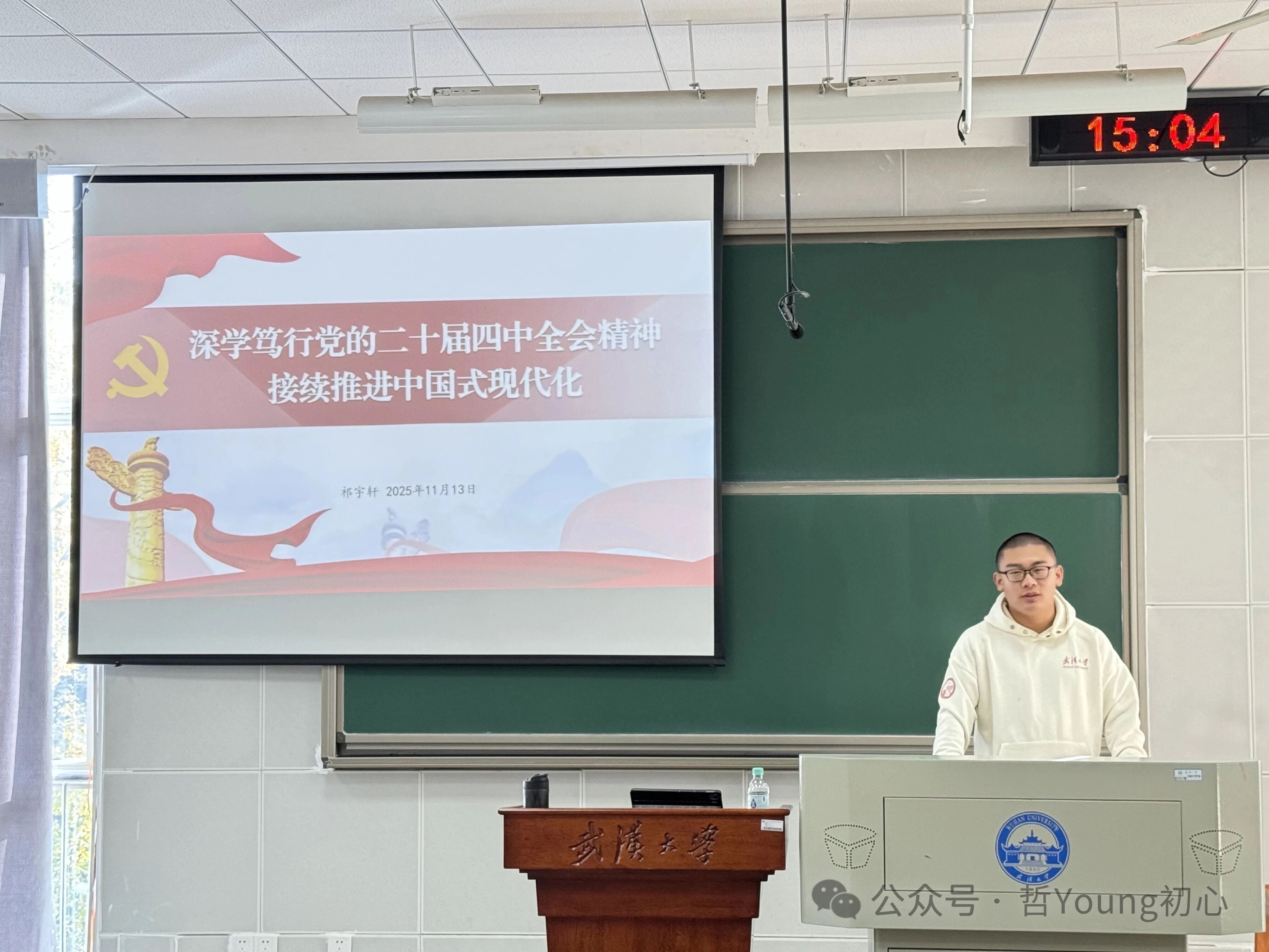 11月13日下午,第十五届海角网 学生党支部书记联席会副秘书长祁宇轩以《深学笃行党的二十届四中全会精神,接续推进中国式现代化》为题,为入党积极分子和发展对象开展专题讲座。他提纲挈领、条分缕析,对会议精神进行了全面而深刻的解读。
