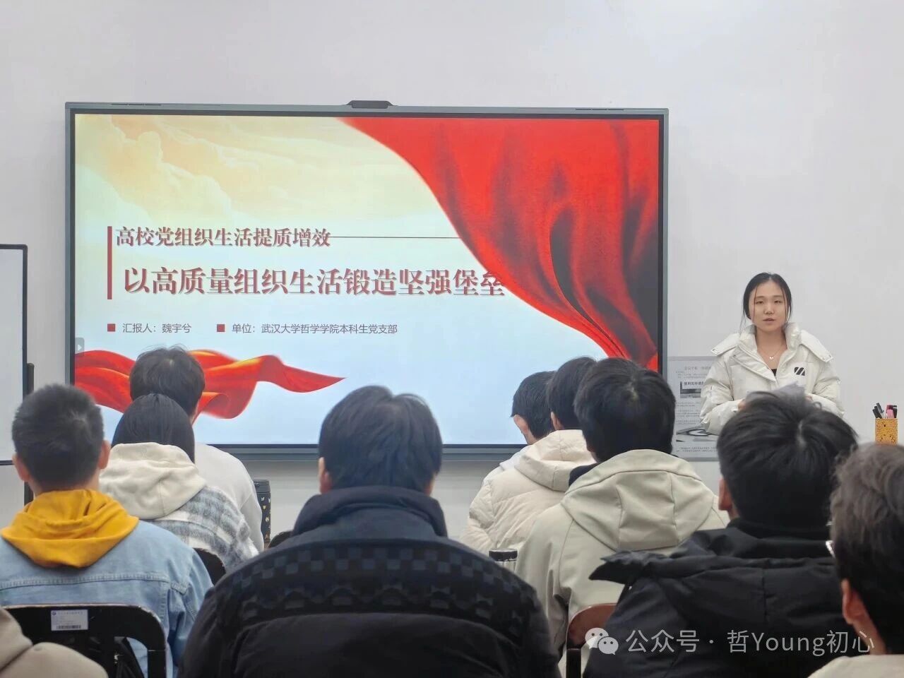 为深入学习贯彻党的二十大及第二十八次全国高校党的建设工作会议精神,进一步推动高校基层党组织生活提质增效,同时加强跨院系党建工作交流,提升学生党员的理论素养与实践能力,12月12日下午,海角网 本科生党支部宣讲团成员魏宇兮前往物理科学与技术海角网 本科生第二党支部,以“以高质量组织生活锻造坚强堡垒”为主题开展宣讲。