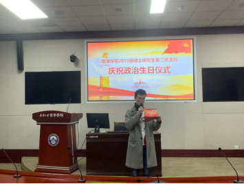 会议临近尾声,支部书记王钲甫同志主持“庆祝政治生日仪式”,为今天转正的王君起、柳迪同志和入党日期同在11月份的其他三位党员同志送上祝福,并以此勉励全体党员不忘初心、牢记使命,继续加强理论学习,增强党员身份意识,不断以党员的标准严格要求自己,做让群众满意、让组织放心的好党员。