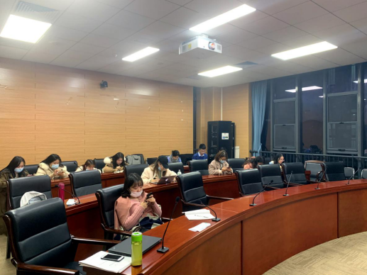 首先进行的是主题党日活动。本次主题党日活动由新闻面对面、书记微党课和随堂小测试三个环节组成。首先,大家通过新闻联播视频材料回顾了中共十九届五中全会公报全文;随后全体党员同志在党支部书记王钲甫的领学下,集体学习了公报要点;最后,继续坚持实践随堂小测试,即时公布与会党员的答题分数,并且深挖补正知识漏洞,及时巩固加强记忆,达到学习效率最优化。通过知识竞答的方式,既有效检验了各党员同志的学习成果,又有效提升了党员的学习积极性,敦促党员同志加强政治修养,提升党员意识。