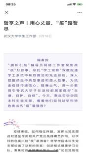 “哲说新时代”活动自开展以来,在思想引领、学风建设、制度管理等方面均取得积极成效,得到了上级党委的一致认可和社会的广泛赞誉,曾先后被全国思政工作网、湖北省思政工作网、武大新冠防疫网、珞珈新闻、校学生工作部等多方媒体报道,点击量和阅读量累计超过10000,辐射面和影响力进一步扩大。