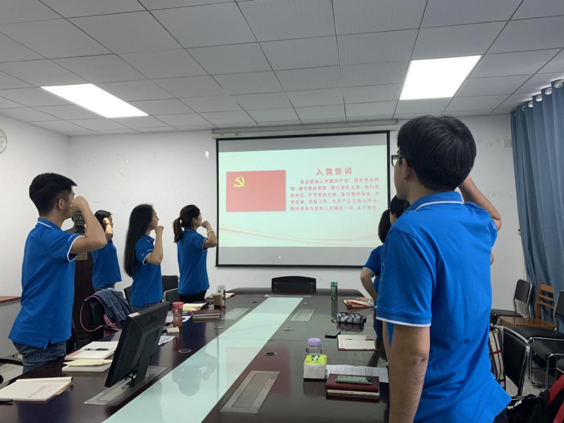 首先,全体党员重温一次入党誓词,宣传委员詹思群同志领誓。