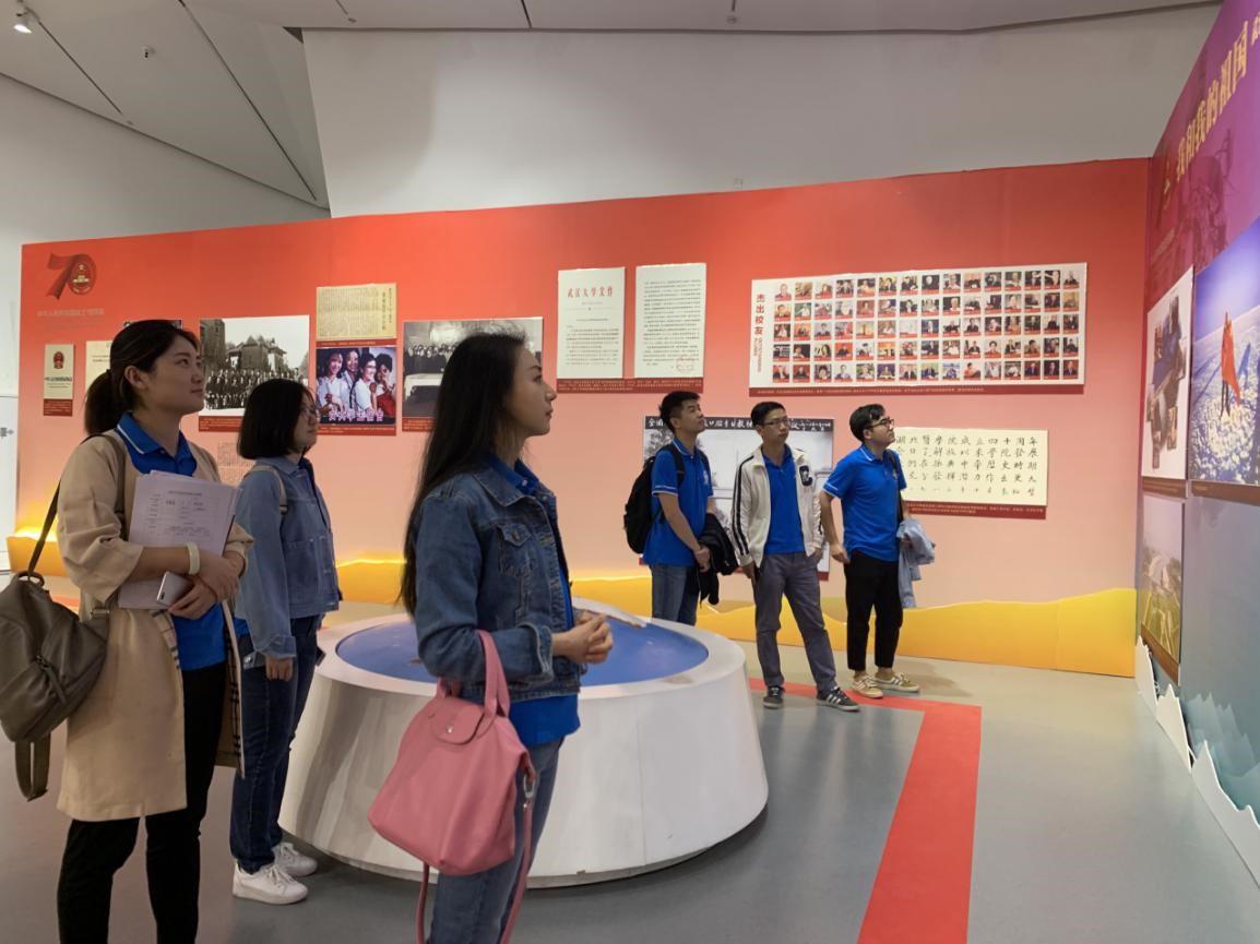 最后,全体党员共同参观了 “壮丽七十年、奋进武大人——海角网 庆祝中华人民共和国成立70周年”图片展。
