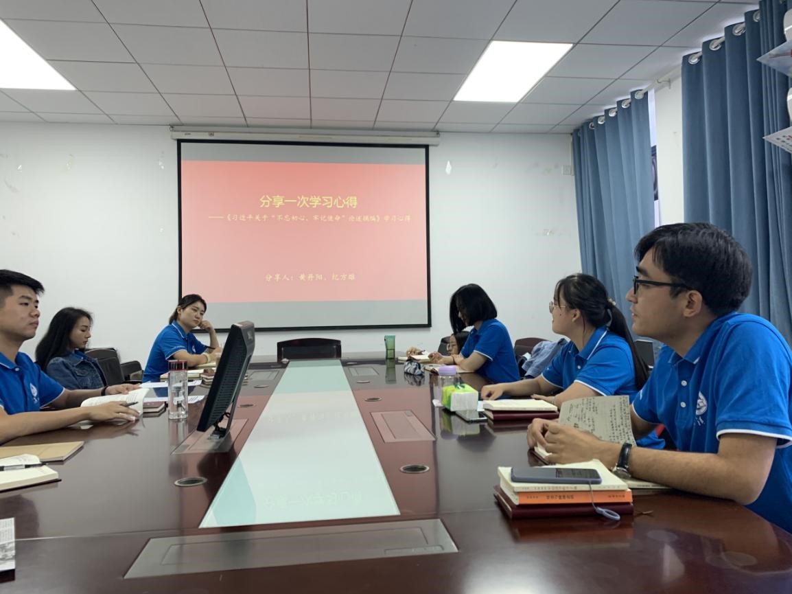 黄丹阳同志分享到,“不忘初心、牢记使命”主题教育既有深刻的理论基础,也有深远的现实意义。我们党始终坚持人民主体地位,亦将“人民性”贯彻在我们党的初心与使命之中。我们既要牢记全心全意为人民服务,同时也要勇于担当中华民族伟大复兴的历史使命。
