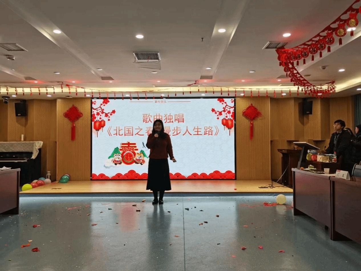 联欢会由青年教师王咏诗、贺念主持,分为“回首·总结”“节目·展望”“联欢·团圆”三个板块,节目精彩纷呈,游戏妙趣横生,全场笑声不断。
