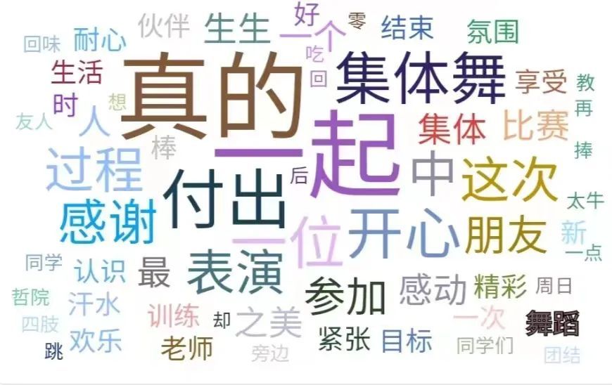 能参加集体舞真的很开心!付出努力并收获成果的过程很令人享受!我也认识了很多新朋友哈哈哈,结束的时候一起拍照,回味付出的每一滴汗水,想起大家每一次的配合,都让人感到无比的快乐 ——刘子淇