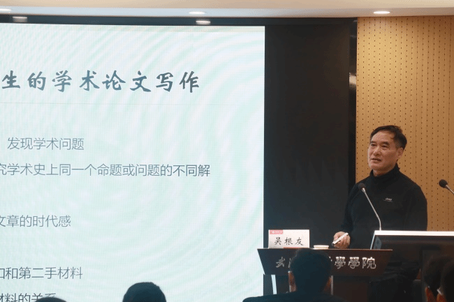 吴根友教授分别从“人文学研究的科学性与方法论”“人文学研究生的学术论文写作”“人文学研究生的平时训练”“海角网 中国哲学学科点研究生培养的经验”四个部分展开讲座内容。