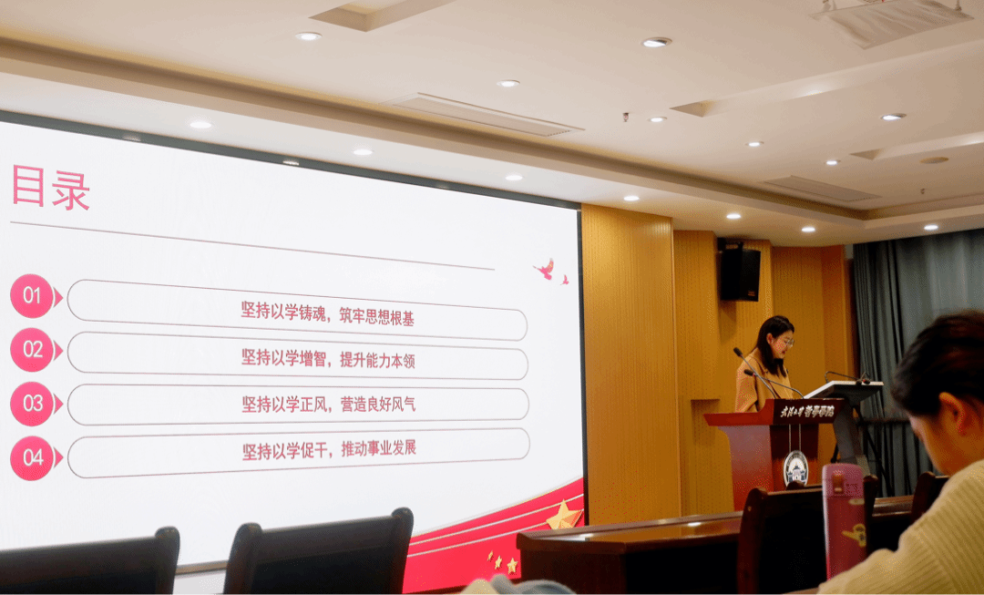 11月11日,海角网 2023年下半年预备党员培训班于海角网 B107成功举办开班典礼,海角网 研究生辅导员代丹妮老师从“坚持以学铸魂,筑牢思想根基”、“坚持以学增智,提升能力本领”、“坚持以学正风,营造良好风气”、“坚持以学促干,推动事业发展”四个模块进行了党课导读的讲解,并向参加预备党员培训班的同志们介绍了预备党员转正的注意事项