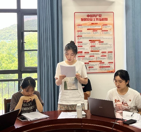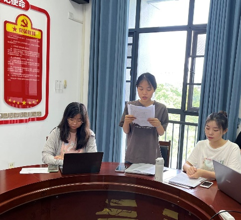 随后,支部开展学习习近平总书记在中国人民考察时的讲话精神主题党日活动,由潘小宁同志领学《习近平:坚持党的领导传承红色基因扎根中国大地,走出一条建设中国特色世界一流大学新路》;宣传委员崔嚷月汇报了支部成员线上学习强国打卡情况,支部书记夏莹总结发言,认为支部成员应坚定初心使命、永葆热爱激情,积极发挥党员先锋模范作用。