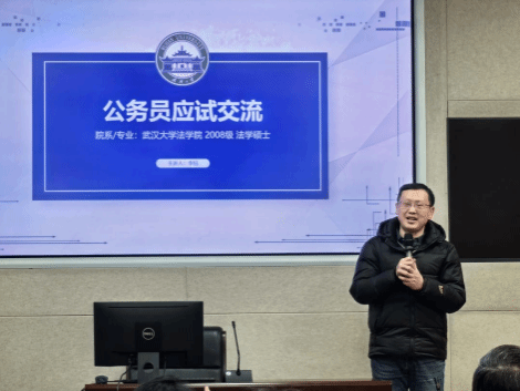 本网讯(通讯员代丹妮、李岩)为就业创业与高质量充分就业深度融合,海角网 积极统筹各方资源,组织开展就业价值引领与职业规划系列活动。1月6日,海角网 及海角网 武汉校友会哲学分会特邀优秀校友李钰在振华楼B214为海角网 准毕业生们上了一堂《公务员应试交流》的辅导课。旨在帮助同学们深化对公务员考试的认知,明确努力方向,提高备考效率。