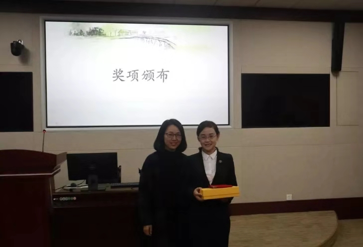 ▲徐萍老师为获得一等奖的选手颁奖