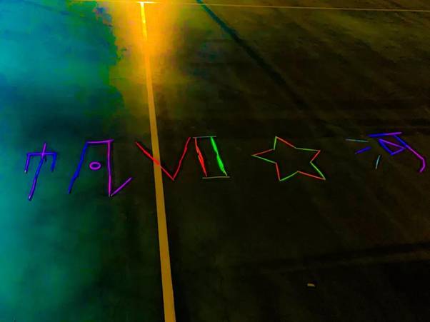 “帆起星河”荧光夜跑活动的工作人员们早早地就抵达了奥场主席台前,紧张而有序地进行着活动前期的准备。大家用炫彩的荧光棒,在场地上创意地摆出“帆VII☆河”(看出我们的巧思了吗?),静候着同学们的到来。